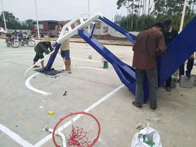 平箱移动式篮球架安装进行中